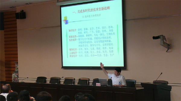 祁明教授对创新环境的历史,背景作了具体的介绍,对目前大部分企业没有在企业内部营造一个创新氛围,缺乏创新意识,导致在激烈的竞争中被淘汰的原因进行分析。同时劝诫顺德的企业家们和同学们要有危机意识,要勇于创新。企业只有不断加大研发力度,提高产品的附加值才能在激烈的竞争中脱颖而出,立于不败之地。