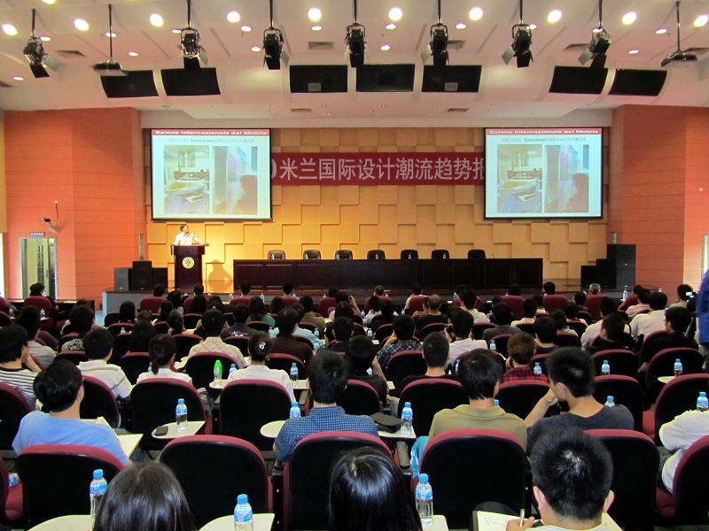 5月12日下午,由学校艺术设计系主办,顺德区人民政府经济促进局、佛山家具协会、顺德家具协会、顺德工业设计协会、尚怡(乐雅轩)家具有限公司协办的“2010米兰国际设计潮流趋势报告会”在学校学术交流中心举行。报告会由艺术设计系副主任廖荣盛主持,来自深圳、东莞、广州等珠三角一百多家企业的200多位企业家、设计师和艺术设计系近600名师生参加报告会。