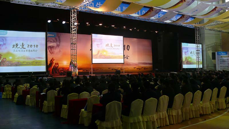 本次年会内容主要包括年度规划、区域述职报告、狼性营销、行业趋势、营销案例大赛、团队融合拓展、新春晚会等多项活动,共有900名来自全国各地分公司的营销精英、经理参加。为做好相关工作,创培学院与经济管理学院、总务处紧密合作,为美的集团提供一系列的优质服务,深得与会学员及美的集团领导的赞赏,促成美的集团2010年营销年会完满成功。