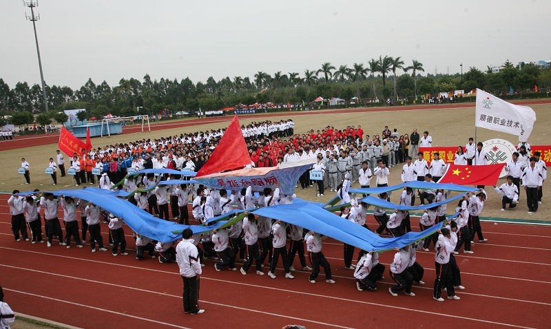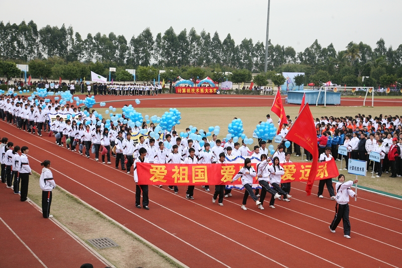 开幕式在裁判员和运动员的入场仪式中拉开序幕,护旗队、幡旗队、教工代表队、学生代表队排着方队依序入场。当天气温虽然寒冷,但是队员们不畏寒风,迈着铿锵有力地步伐昂然向前,计算机系的同学们手系彩球,将美好的祝愿放飞蓝天;医学系的代表们用方队组合成象征救死扶伤的红十字图案;经管学院的“顺职和谐号”载着学子们驶向知识的彼岸;方队队员们充满朝气、别出心裁的表演迎来了全场阵阵喝彩和掌声。
