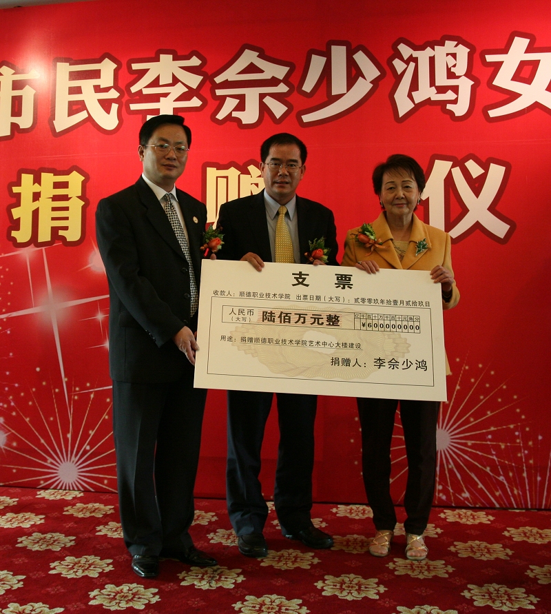 为支持家乡教育事业的发展,昨日,香港顺德乡亲、永利官网校董李佘少鸿女士向永利官网捐助600万元人民币。顺德区区长梁维东,区委副书记、区委社会工作部部长、区民政宗教和外事侨务局局长周志坤,顺德区副区长、区教育局局长曹洪彬,永利官网领导夏伟、陈智、何锐连、陈粟宋、谭谦章、徐刚等出席了捐赠仪式。