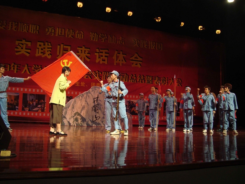 随后,通过10分钟短片回顾和5个节目的表演,又重现了暑期大学生社会实践的场景,点点滴滴让人回味,同时反映了参加社会实践的同学们的收获:见有所学,学有所践;成长成才,报效祖国。