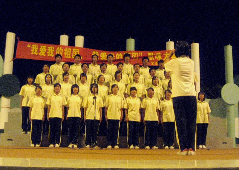 9月26日晚,艺术设计系团委在露天舞台举行了“我爱我的祖国,我爱我的顺职”歌咏比赛。艺术设计系党总支书记张建国、系辅导员、班主任、军训教官及六百多名学生参加了活动。