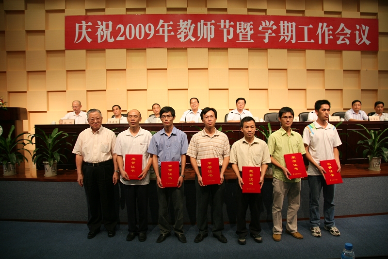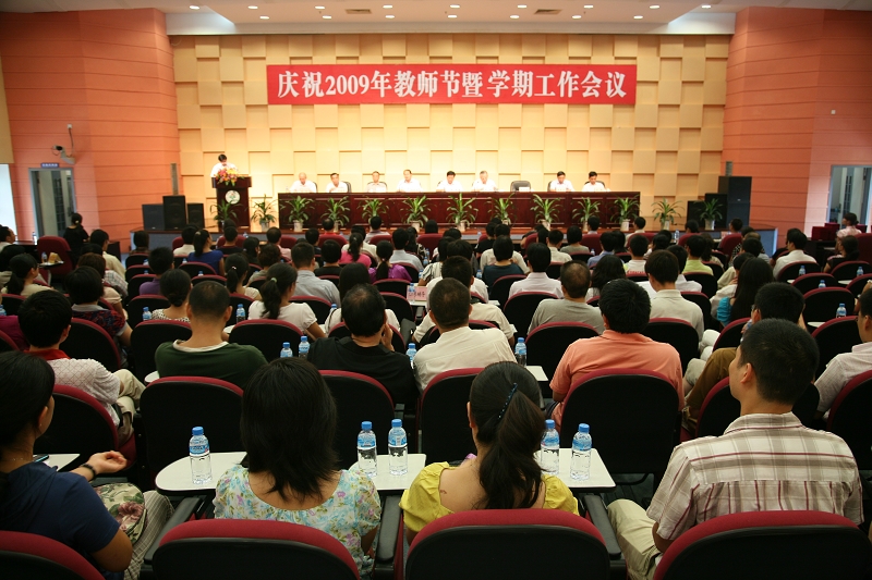 9月9日,在第25个教师节来临之际,永利官网举行庆祝2009年教师节暨学期工作会议。学校领导夏伟、陈智、何锐连、邹时智、罗勇武、陈粟宋、谭谦章、刘毓、徐刚及全校教职工出席了大会。何锐连副院长主持了会议。