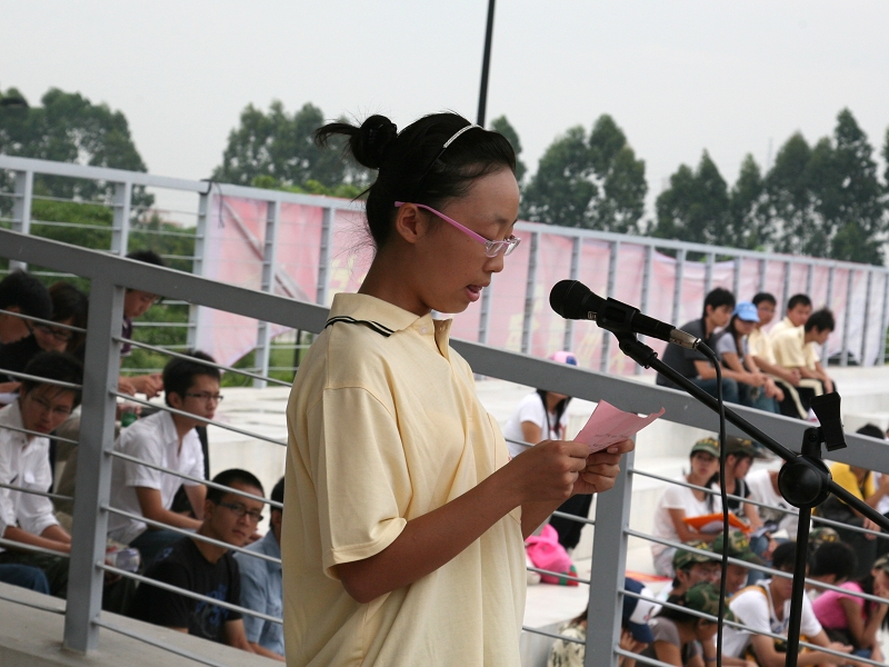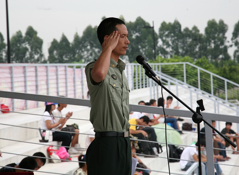 来自甘肃省嘉峪关市的电子工程系09级新生张慧婷同学代表全体新生表决心:在军训中努力学习、刻苦训练,以立志成才的激情、战胜困难的决心面对入校后的第一个挑战,树立良好的新生形象,塑造崭新的精神面貌,用实际行动展现永利欢乐娱人城学生的良好形象和新时代青年的风采。