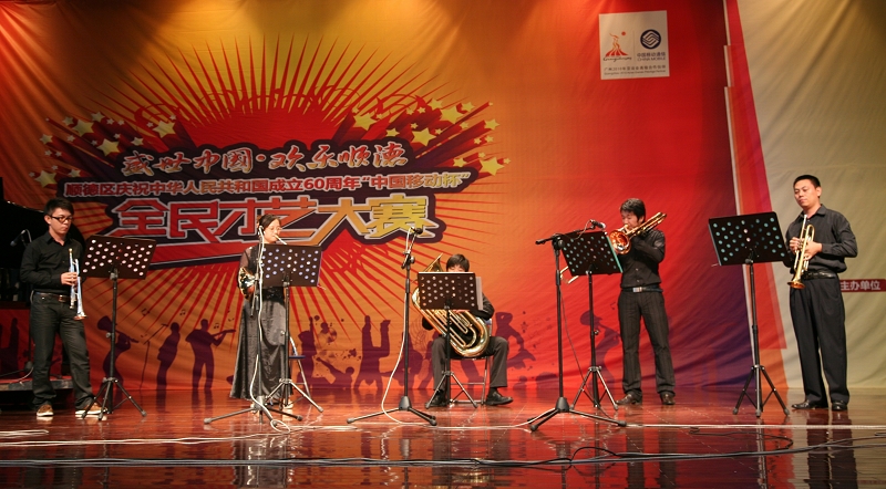 9月16日下午,顺德区庆祝中华人民共和国成立60周年“中国移动杯”全民才艺大赛·器乐大赛(总决赛)在永利官网梁銶琚堂举行。顺德区文体广电新闻出版局张新杰局长、中共佛山市顺德区委宣传部沈涌副部长、永利官网夏伟院长、邹时智副院长、谭谦章纪委书记、刘晓顺部长等出席了本次大赛,并为获奖选手颁奖。