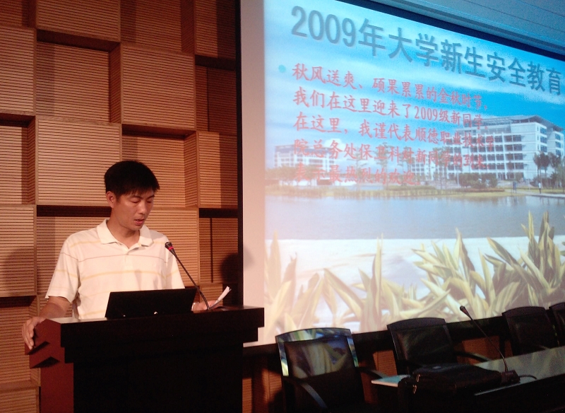 9月13日下午,在永利官网五号学术报告厅、教学楼8-200等27个教室(视频转播)召开09级新生安全教育讲座,学校学生处、总务处、信息中心、医学系相关老师、各系(院)辅导员以及09级全体新生参加了讲座。