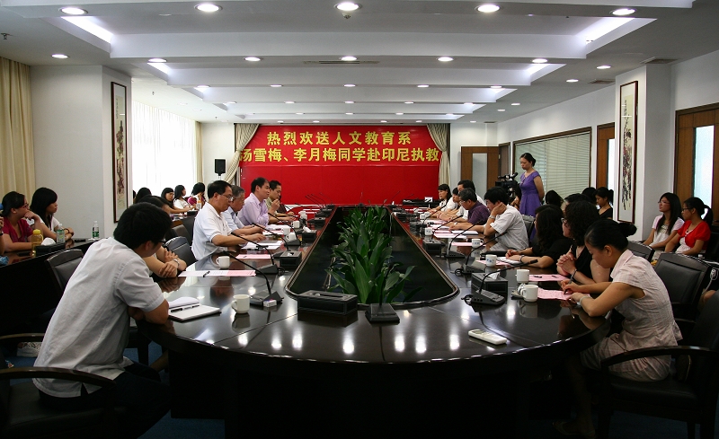 7月7日上午,人文教育系为赴印尼执教的两位小教专业学生汤雪梅、李月梅举行欢送会。顺德区侨务外事局副局长陆国伟、院领导陈智院长、何锐连副院长出席欢送会,人文教育系系领导、老师以及30多名同学共同参加了本次欢送会。