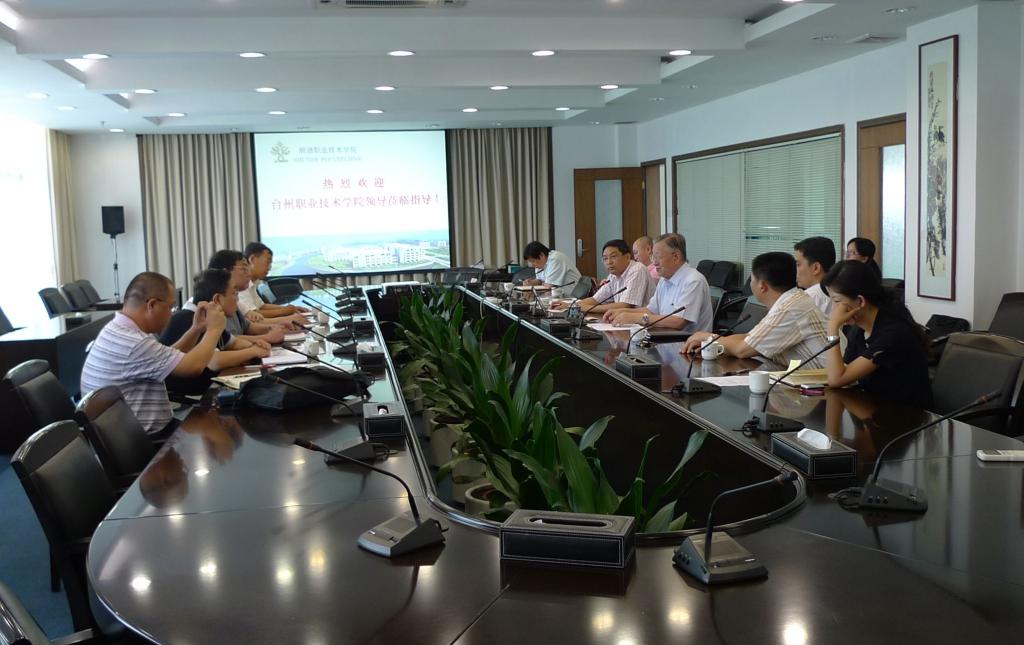 7月9日下午,台州职业技术学院院长金则新一行五人来永利官网参观考察。永利官网领导陈智、陈粟宋、刘毓、徐刚,中层干部陈学锋、卢伟成、肖冰及办公室相关工作人员热情接待了来宾。
