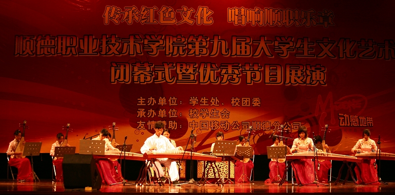 由校艺术团管乐团合奏的《欢迎进行曲》拉开了节目展演的序幕,激情的指挥、极富感染力的演奏,震撼着现场的每一位观众;诗歌朗诵《顺职,我是您永远的守望者》、《祖国,我亲爱的祖国》道出了一份爱国荣校情怀;小合唱《共青团之歌》凸显了青年的壮志豪情;民乐合奏《平湖秋月》让观众体会到民乐文化的独特魅力;英文小品《服务从心开始》使观众赞叹不已,掌声四座;小组唱《赋得古原草送别》、《清明》展现了当代青年激情奔放、朝气蓬勃的高尚情怀;特邀嘉宾星海音乐学院学生演奏的弦乐四重奏《匈牙利舞曲第五号》、《蓝色多瑙河》悠扬而轻快、激昂而振奋;优美的舞蹈《走在山水间》将晚会拉入了尾声,闭幕式在经久不息的掌声中圆满落幕。