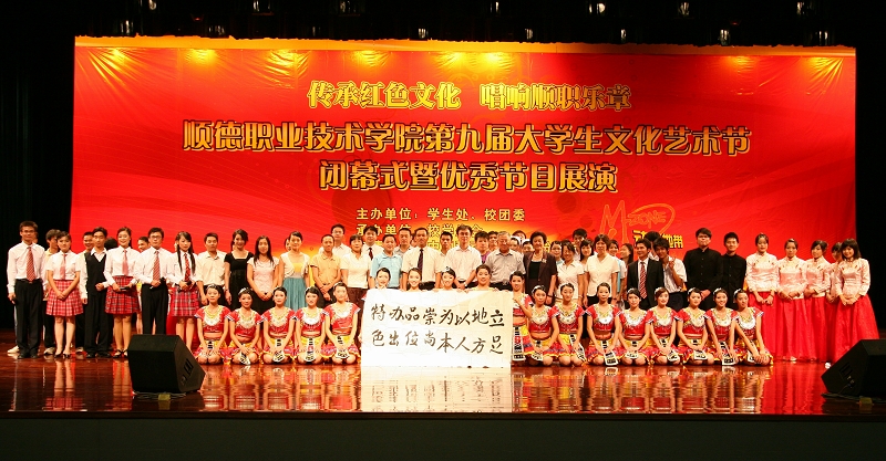 6月17日晚,永利官网第九届大学生文化艺术节闭幕式暨优秀节目展演在梁銶琚礼堂隆重举行,顺德老年大学佘炜校长、中国移动顺德分公司大良、伦教服务销售中心李锋副总经理、永利官网领导陈智、谭谦章、刘毓以及各系(二级学院)党总支书记、主任以及2000多名师生参加了本次活动。