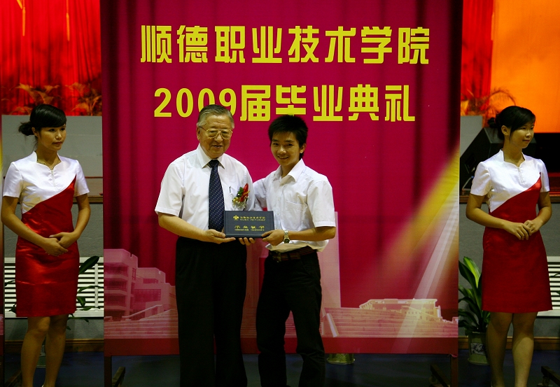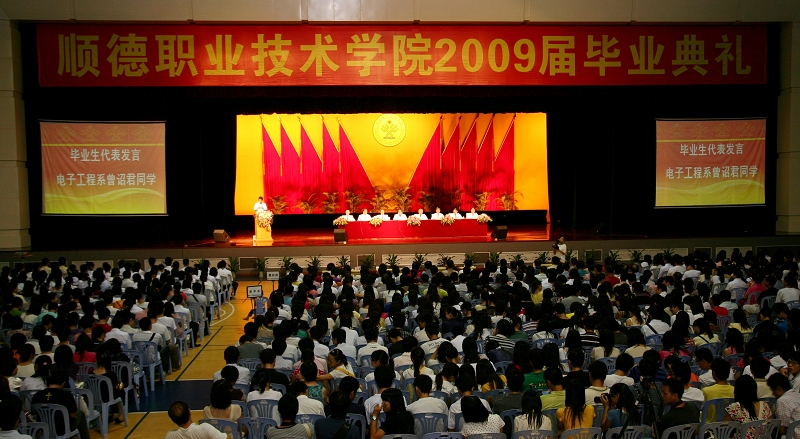 接下来,播放了“《见证成长,留下足迹》2009届毕业生成长短片”。短片记录了同学们在校三年的点滴,感人而兴奋;学生自己写的作品诗朗诵《顺职学院,我是您永远的守望者》表达了毕业生们对母校的怀念依恋之情,再一次把典礼的气氛推向高潮。