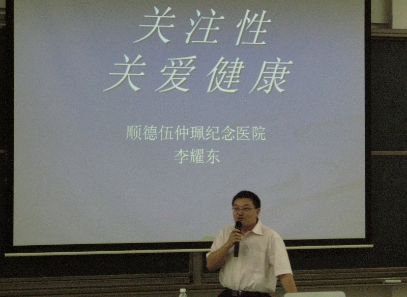5月21日晚,在教学楼3-200课室成功举办了第六届“5•25”大学生心理健康节系列活动之——大学生性心理健康知识讲座。本次讲座由学院心理健康教育与咨询中心主办,外语系心理辅导站承办,顺德伍仲珮纪念医院医技科副主任李耀东医生担任主讲。