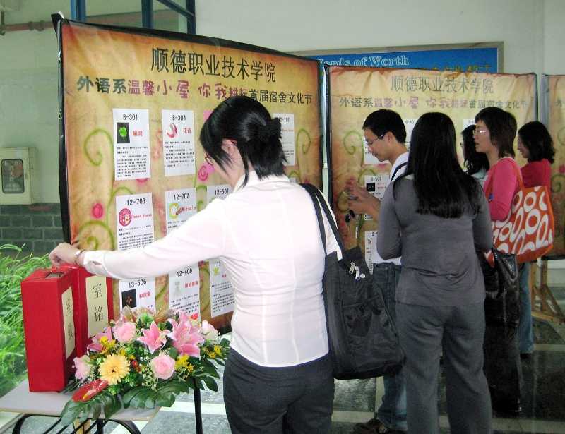 宿舍是大学生生活、学习、交往的重要场所,是大学生思想道德建设的重要阵地,为了加强永利官网宿舍和文化建设,提高学生的思想道德素质,提高学生生活环境的卫生质量,营造一个有浓厚学习氛围的宿舍环境。四月中旬,学生处发文《关于开展2009年宿舍文化建设活动的通知(顺职院学字【2009】15号)》动员开展宿舍文化活动,各系(二级学院)积极响应,认真组织、精心安排,广大同学们的踊跃参与,截至5月中旬,永利官网开展宿舍文化建设活动初见成效。