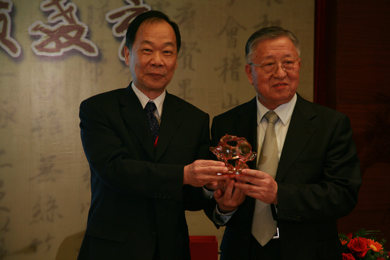致辞结束后,台湾辅英科技大学校长张一蕃教授向陈智院长赠送了礼物。
