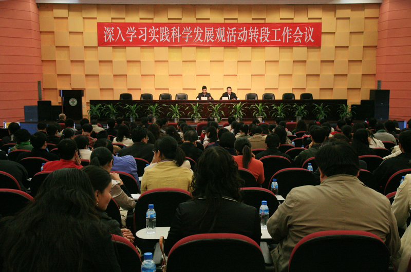 12月10日下午,永利欢乐娱人城召开深入学习实践科学发展观活动试点工作转段工作会议,对学习实践活动的第二阶段分析检查阶段工作进行具体部署。学院党委领导班子成员和全体教职员工参加了工作会议。会议由党委委员、组织人事处处长刘毓主持,党委副书记何锐连做了转段工作动员报告。