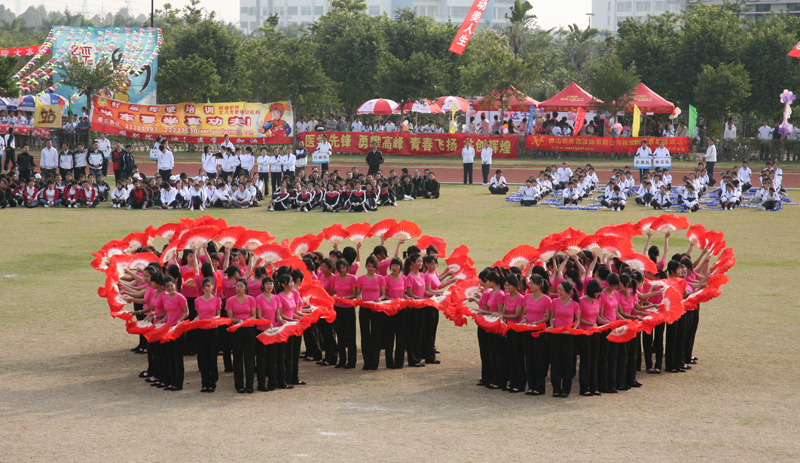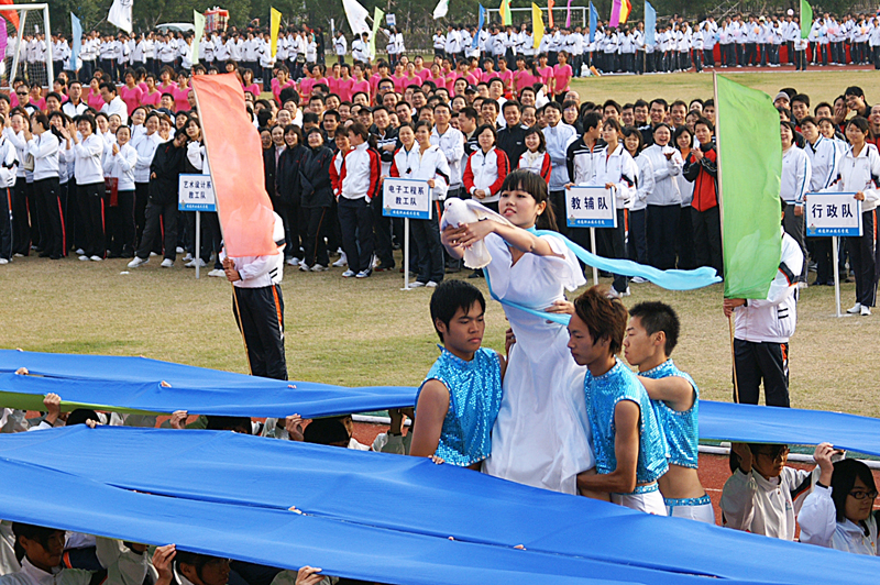 学生方阵用其精彩纷呈的表演为运动会的开幕献礼:人文教育系同学扇舞翩跹,身姿优雅;外语系的特色花样拼图《齿轮》,宏亮而富有节奏的鼓点振奋人心;经济管理学院的《武术魂》、医学系的擒拿拳、计算机技术系的太极等表演,将我国传统武术文化同现代体育精神完美结合,让师生们享受到了一场视觉盛宴;还有电子工程系的旗舞、机电工程系的图案、艺术设计系的倒功、酒店及旅游管理系的集体操等节目也都匠心独运,博得师生们阵阵喝彩。