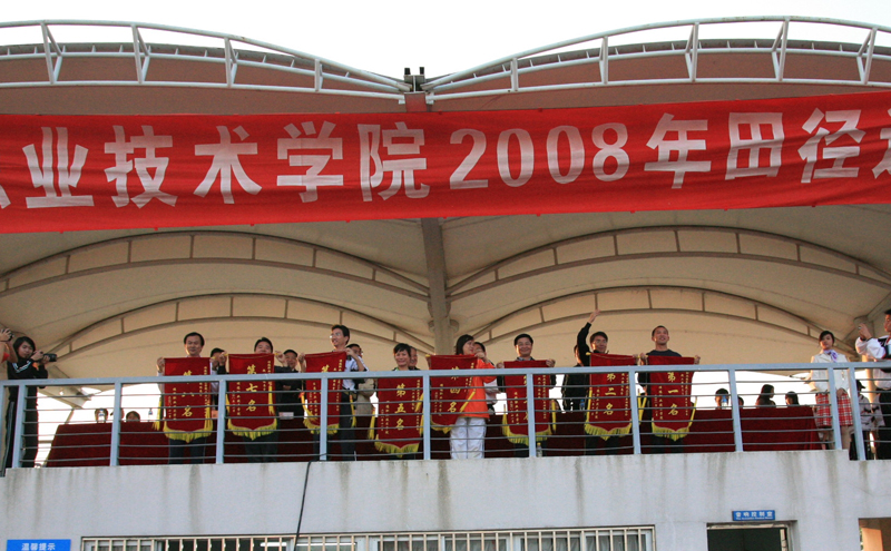 21日下午,学院2008年田径运动会顺利完成了各项预定的比赛项目,圆满地落下帷幕。本次田径运动会,运动水平有明显的提高,创造了新的喜人佳绩。闭幕式上,冯俊祥裁判长宣布了比赛结果,本次运动会共产生单项冠军86个,集体项目冠军10个,学生组共2人2次打破1项学院田径运动会记录,教工组共32人42次打破24项学院田径运动会记录,评出了团体总分奖14个,并根据学生的整体表现评选出优秀组织奖5个。学院领导分别向获奖单位和个人颁发了锦旗、奖状和奖牌。