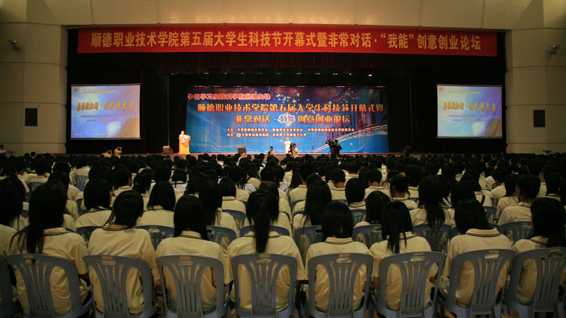 2008年11月5日下午,由共青团顺德区委员会、顺德青年企业协会、共青团永利欢乐娱人城委员会主办的以“青春献祖国·创意铸未来”为主题的永利欢乐娱人城第五届大学生科技节开幕式暨非常对话·“我能”创意创业论坛在梁銶琚堂隆重拉开帷幕。