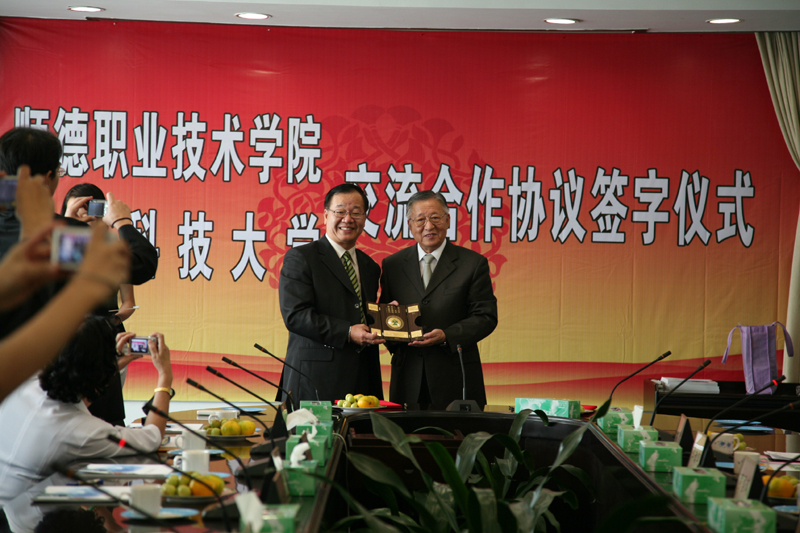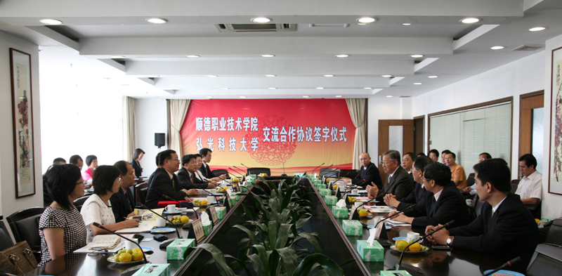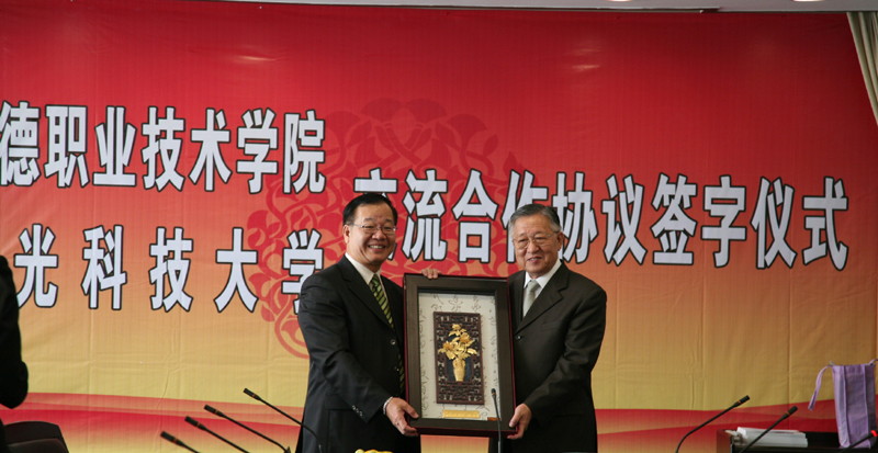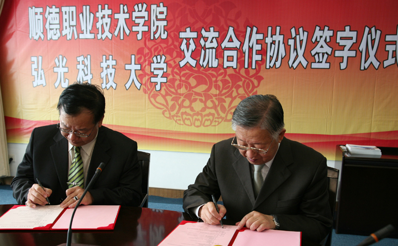 座谈会上,宾主双方就教师和学生交流、合作办学及开展科研合作达成了意向。陈智院长、陈昭雄副校长分别代表永利欢乐娱人城和弘光科技大学签订了交流合作协议。