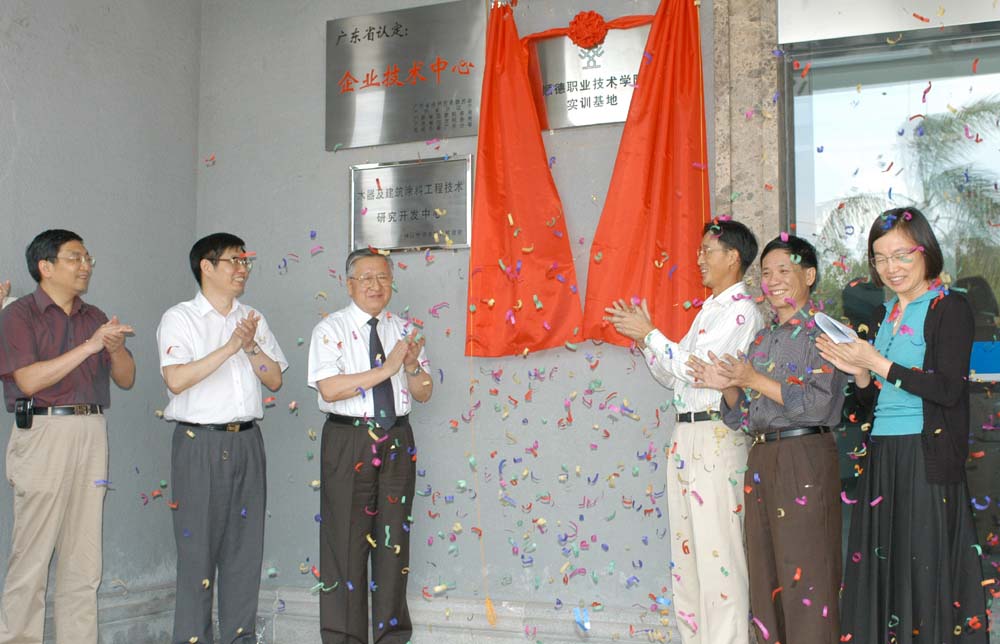 签约仪式上,陈智院长对实训基地的成立表示衷心的祝贺,也对华润公司的大力支持表示衷心的感谢。胡景钊会长在仪式上发表了热情洋溢的讲话,对顺德涂料行业的前景、应用化工技术专业的毕业生就业前景作了详细的分析,对于我院与全国最大的民营涂料企业建立校外实训基地,联合培养适应顺德地区行业需求的人才表示了热烈的祝贺。随后,陈智院长和梁俊谦董事长为校外实训基地进行揭牌。陈智院长等在华润公司总经理助理方昕的陪同下参观了华润公司的车间和研发部等部门。