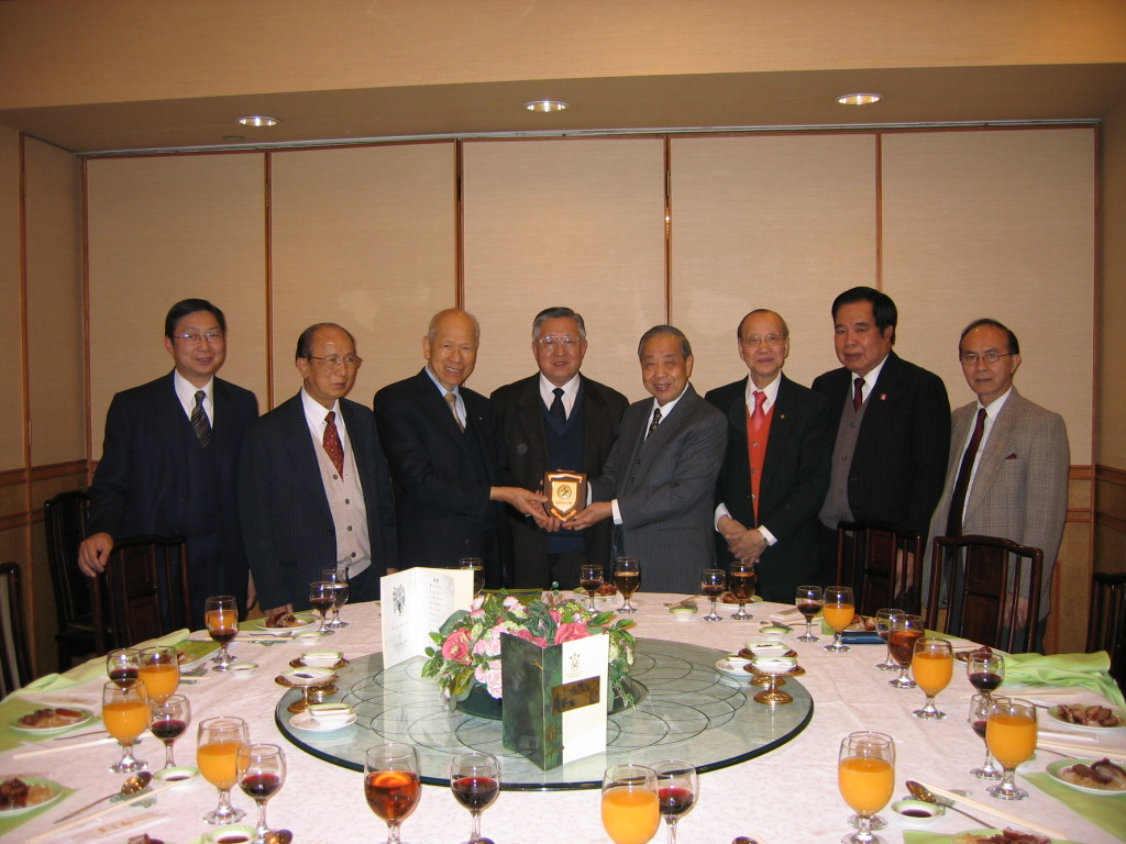 图为陈智院长、何锐连副院长、陈礼副院长在“新春团拜暨会员联欢会”与旅港顺德绵远堂主席刘鼎新(右二)等的合影