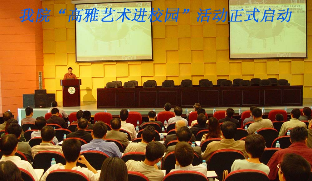 为提高广大师生的艺术人文修养,我院“高雅艺术进校园”活动11月16日正式启动,人文社会科学系主任陈建华 “《大学国文》课程与文化精神”首先开讲。我院院长陈智、纪委书记谭谦章、全院中层干部及全体教师前往报告厅参加了本次讲座。