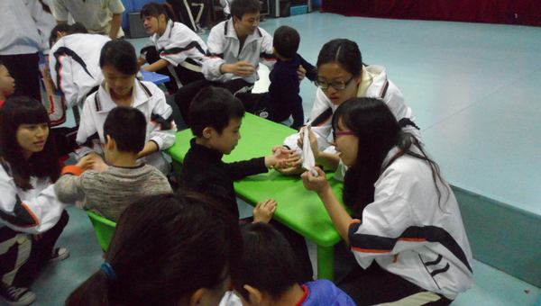 在活动开始之前,志愿者们首先从康复中心护工处详细学习了照顾特殊儿童的注意事项,力图通过每一个细节为孩子们营造一个亲切、温馨的氛围。