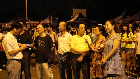 党委副书记齐振彪在游园会上祝愿大家节日快乐,并与新生学子及教官一起拉家常、过中秋。一位来自河南的新生这样说到:“学校组织中秋游园活动实在是太人性化了,这让我忘记了多天以来参加军训的苦,更让我感受到第一次远离家人在异地过中秋并不孤独。”