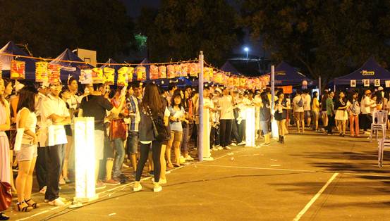 本次中秋游园活动以“摊位”项目制的方式进行,共设有“猜灯谜”、“趣味拼歌词”、“现场KTV”、“DIY灯笼设计”等40多个摊位及游戏。各摊位都吸引了众多师生参加,其中在主舞台的“现场KTV”更是吸引了一大群新生踊跃报名,让掌声和笑声在校园里回荡。各二级学院学生会也积极协办,在露天舞台及周边运动区域设摊,增加节日的氛围。