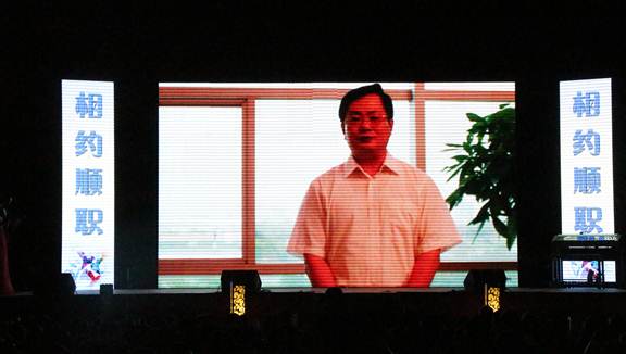 夏伟校长虽因工作原因无法亲临活动现场,但仍在百忙之中抽出时间为本次晚会录制祝福视频,在晚会上向全校师生特别是2013级的新同学送去了美好的祝愿,让全校师生都深受鼓舞。