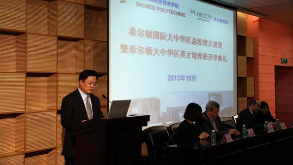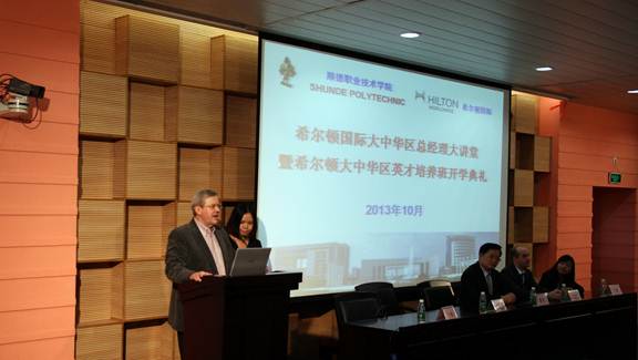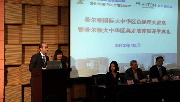 10月30日下午,希尔顿国际大中华区总经理大讲堂暨英才培养班开学典礼在永利官网5号学术报告厅隆重举行。永利官网夏伟校长、广州白云万达希尔顿酒店总经理Andreas Justkowiak、佛山希尔顿酒店总经理Micheal Bamberg、希尔顿全球大中华区及蒙古南区人力资源总监陆荃女士、广州白云万达希尔顿酒店人力资源总监叶绚女士、中山利和希尔顿酒店人力资源总监王梅女士、中山利和希尔顿酒店培训经理洪若涵女士、永利官网酒店与旅游管理学院负责人及部分老师、90名2012级希尔顿英才培养班的全体同学,以及2013级各班优秀同学代表出席本次活动。