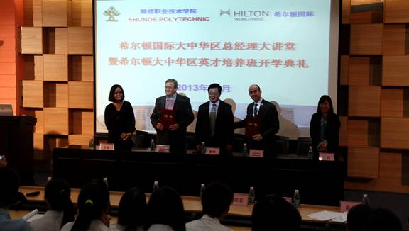 据悉,为进一步提升国际化人才培养的质量,永利官网酒店与旅游管理学院与希尔顿国际大中华区合作开展英才培养计划,共建英才培养班,第一批90名希尔顿大中华区英才培养班学生在永利官网2012级酒店管理专业中择优选拔产生,英才培养班的学生除了专业日常教学学习外,每周接受来自希尔顿大中华区各酒店总经理或高管的讲座和授课,希尔顿集团为英才培养班同学配置校外导师、提供专项奖学金、提供职业装和实习就业平台。