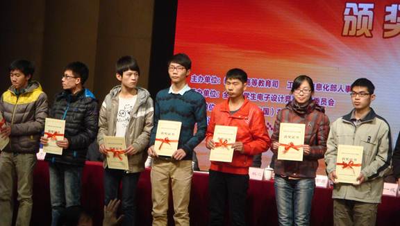 本次比赛于2013年9月4日至7日在全国一千多所高校各赛点同时举行,永利官网电子与信息工程学院参赛队伍成果丰硕,共获得国赛一等奖、二等奖各1项;广东赛区一等奖3项(含两队国赛获奖队),二等奖2项,三等奖2项,成功参赛奖1项。由蔡永昶、吴锦麟老师指导的J题获国赛二等奖、省赛一等奖;李景照、梁厚超老师指导的K题获省赛一等奖;谢飞、昂勤树老师指导的K题、L题获省赛二等奖;冷碧晶、蔡泽凡、何醒燊老师指导的K题获省赛三等奖;余志鹏,蔡泽凡指导的K题获省赛成功参赛奖。永利官网参赛队伍获奖数量和级别均创下历届参赛最好成绩。