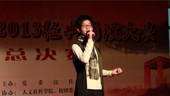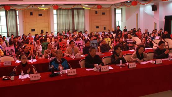 12月27日下午,永利官网一年一度的“中华诵·2013经典诵读”大赛在行政楼九楼教工活动中心举办。大赛邀请第十九届中国戏剧“梅花奖”获得者、著名表演艺术家、国家一级演员高侠,广东电视台报刊社总编辑、一级作家宋晓琪,广东话剧院国家一级演员、热播剧(外来媳妇本地郎)中牛哥扮演者李卫东,永利官网陈建华教授、强金国副教授、吴舒婷老师作为大赛评委。永利官网领导夏伟、刘毓、齐振彪、陈粟宋、谭谦章和师生代表近300人观看了比赛。