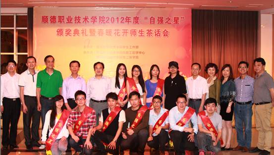 4月17日晚,学生工作部在行政楼九楼活动室举办了永利官网2012年度自强之星颁奖典礼暨春暖花开师生茶话会,永利官网党委副书记齐振彪,督导室、学工部、各二级学院负责人,2012年度自强之星获得者以及各二级学院学生代表参加了此次活动。