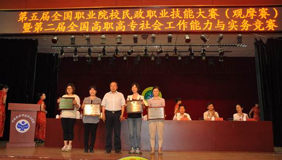 由全国民政职业教育教学指导委员会、民政部职业技能鉴定指导中心和中国社会工作教育协会高职高专委员会联合举办的“第五届全国职业院校民政职业技能大赛”, 5月27日至29日在北京社会管理职业学院举行,永利官网社会工作专业第一次组队参加竞逐,取得了不俗成绩,陈影霞同学获得一等奖,罗静欣、梁绮婷、庞芷瑜3位同学获得二等奖,永利官网代表队荣获团体二等奖。