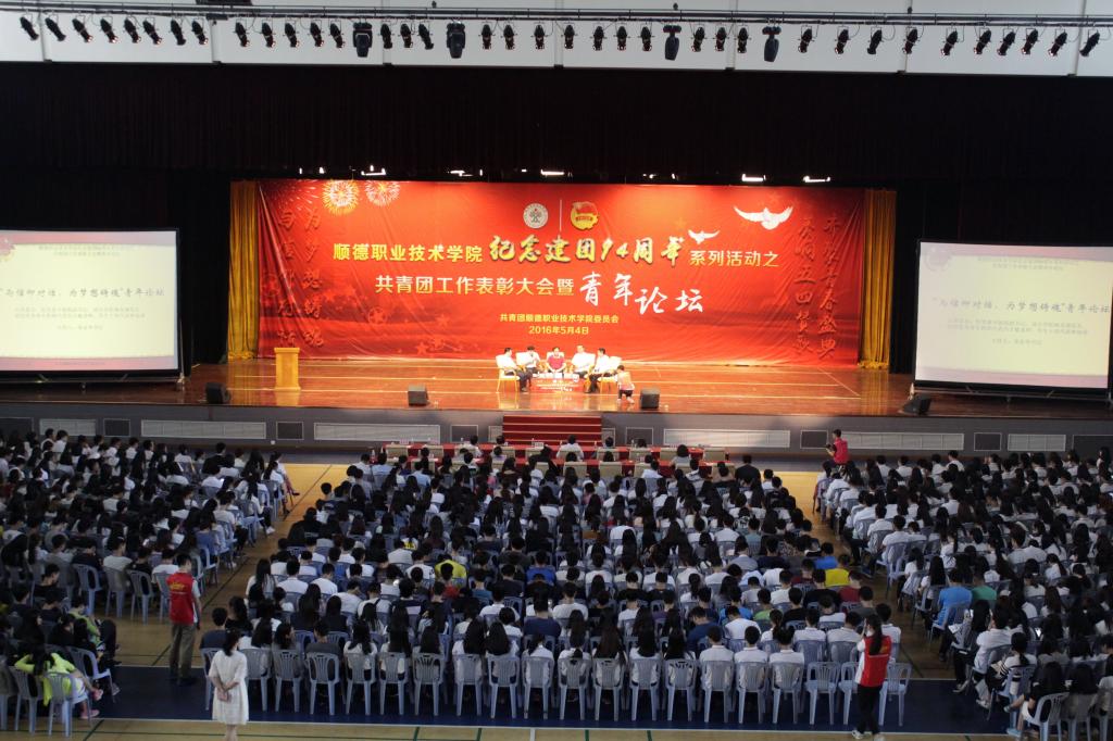 在这个青春的节日里,顺职师生齐聚一堂,共话青春。学校领导、学校优秀青年教师代表、学校优秀毕业生代表坐镇“与信仰对话,为梦想铸魂”青年论坛,与在场的同学们进行互动交流。论坛由校团委负责人主持。