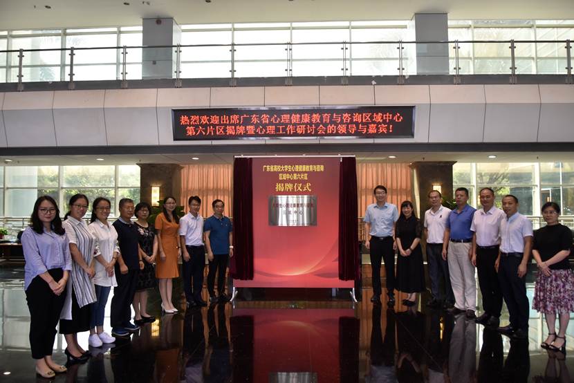 6月3日,广东省高校大学生心理健康教育与咨询区域中心第六片区揭牌暨心理工作研讨会在永利官网隆重举行,广东省教育厅思想政治工作与宣传处科长周中桅,广东省高校心理健康教育与咨询专业委员会主任、广州中药大学教授、主任医师、博士生导师邱鸿钟,学校党委委员、副校长黄健光,顺德区伍仲珮纪念医院副主任医师黄再萍,以及来自片区各高校学生处、马克思主义学院、心理中心和顺德区大中小学心理协同结对单位的领导与老师共60多人参加了活动。