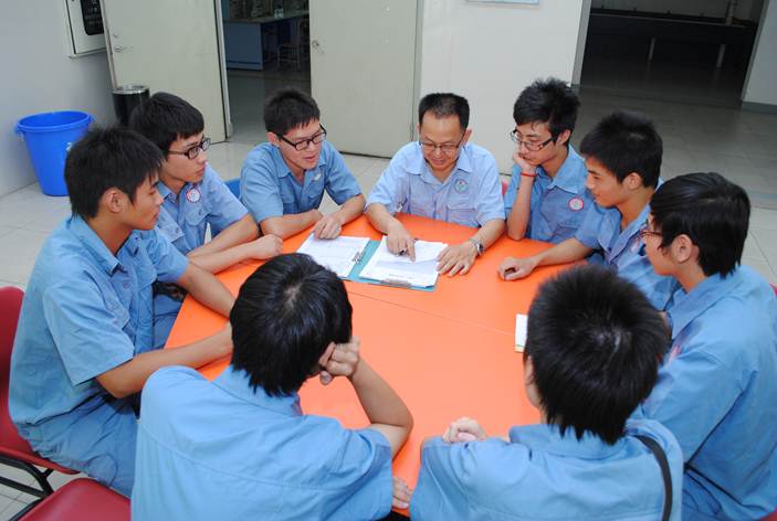 徐言生老师(中)与学生在讨论问题