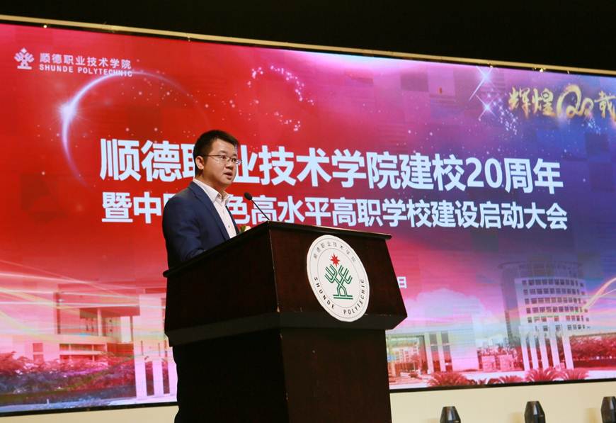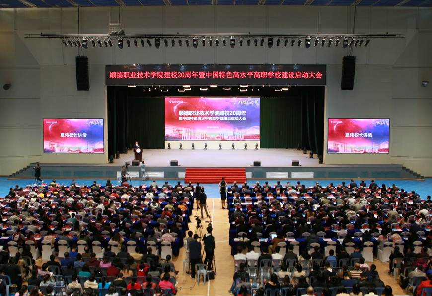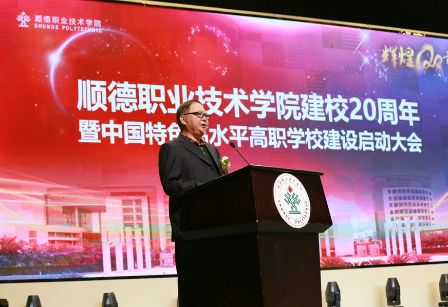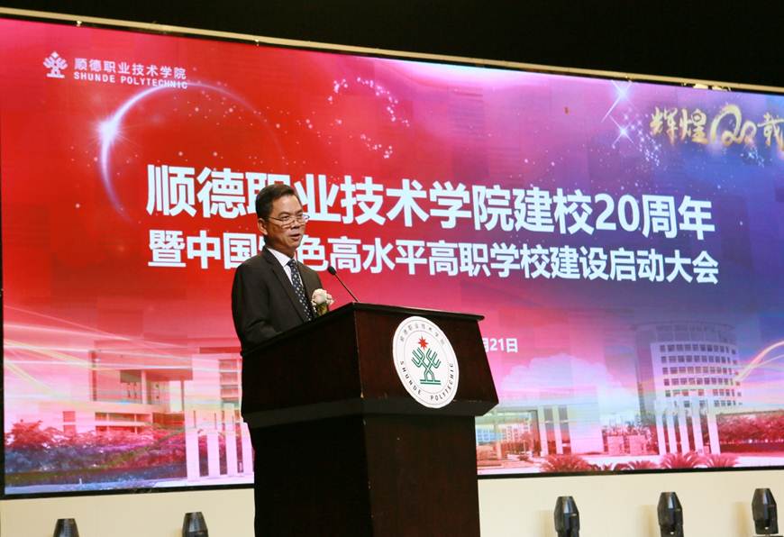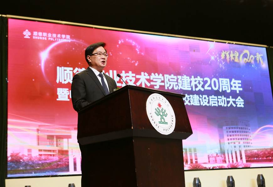 在建校20周年之际,永利官网入选中国特色高水平高职学校建设单位。12月21日下午,学校建校20周年暨中国特色高水平高职学校建设启动大会在梁銶琚堂隆重召开。广东省人大常委会原副主任、学校原党委书记陈用志,清华大学原常务副校长杨家庆,佛山市委副书记、顺德区委书记、学校党委书记郭文海,佛山市人大常委会原副主任冯润胜,原顺德市政协主席招汝基,学校名誉院长陈智,顺德区副区长蔡伟,区政协副主席徐国元,顺德区政府相关部门代表,企业界代表,校友代表,学校现任以及退休党政班子成员,全校教职工及学生代表等近3000人参加了大会。大会由学校党委副书记、副校长刘毓主持。
