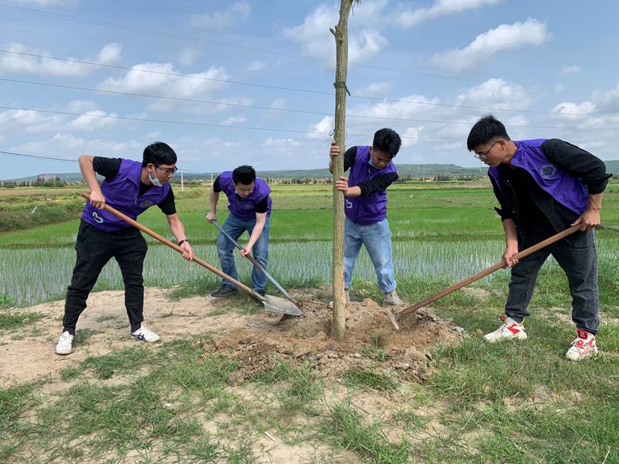 在植树过程中,师生们热情高涨,顶着烈日,卷起袖子,拿着工具,一丝不苟的挥锹铲土、挖坑放苗、扶树培土,浇水灌溉……经过一个上午的时间,在师生们的齐心协力下,共完成了56株黄花风铃木的种植。看着一株株迎风伫立的树苗,新家村村民们满怀喜悦,每个人的脸上都洋溢着幸福的笑容,纷纷对师生们义务植树的行为表示称赞。新家村的村长表示,非常感谢顺职院师生们远道而来开展义务植树活动。黄花风铃木是一种随着四季变化而更换面貌的树,每个季节都有独特的风采,不仅具有很高的观赏性,更为村里增添了一份“春意”。同时,本次义务植树活动,也增强了师生们“绿化祖国”的责任心,使师生们更加关注绿色、关注环保,唤起了师生们植树造林、绿化环境的意识。