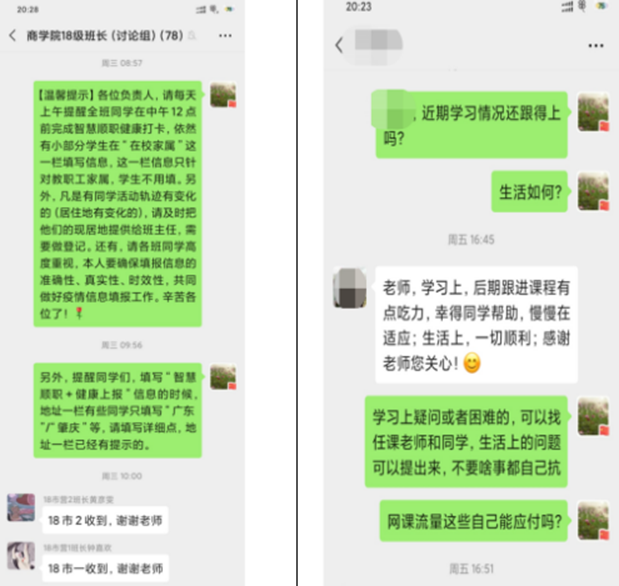 图4:梁意钰老师线上慰问贫困学生和收集每位学生每天健康上报信息