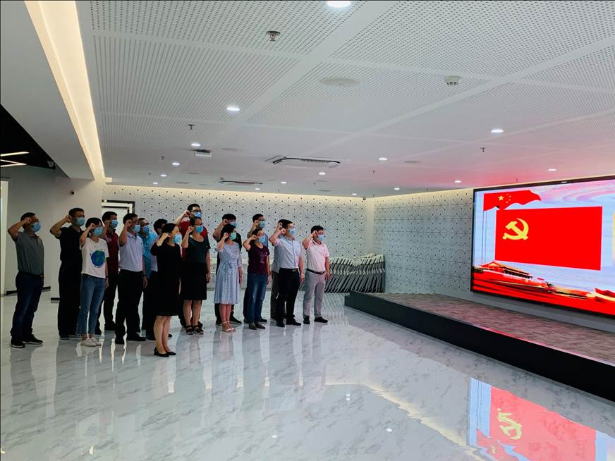 参观结束前,全体人员在展馆面向党旗重温入党誓词。