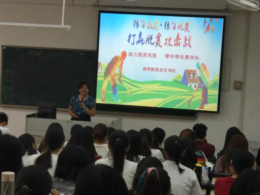 为促进商学院学生进一步了解当前的国际国内发展形势,引导青年学生积极走出新冠肺炎的不良影响,明确自己未来的学习任务和发展目标,承担起青年学生的使命与担当,9月11日上午10点和下午2点30分,商学院党总支书记刘红和商学院院长高钧在教学楼8栋206室分别为同学们上了一堂以《助力脱贫攻坚,青年学生勇作为》、《以梦为马,不负韶华》为主题的思想政治理论课。