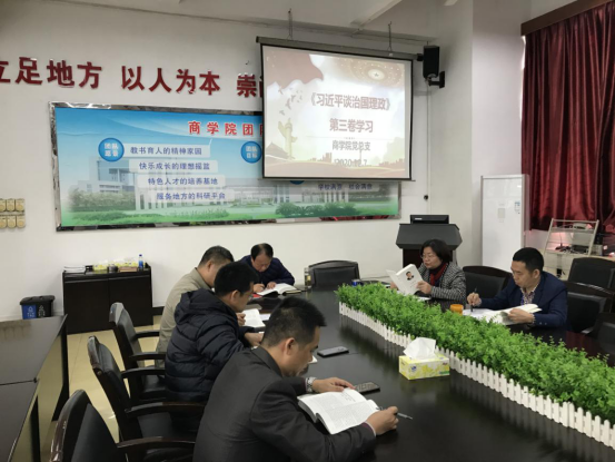 12月7日,商学院党总支在教学楼4栋105会议室开展《习近平谈治国理政》第三卷主题学习及民主生活会。会议由商学院党总支书记刘红主持,商学院院长、党总支副书记高钧、党总支委员李明、张成、符茂、林琼立参加本次学习活动。