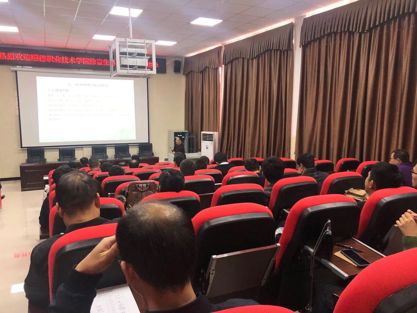 当日下午,徐言生教授为罗定职院骨干教师做了“高水平双师团队建设催生高水平教学成果”的辅导报告。会上,他讲述了双师团队建设经验、”双高计划”团队建设方案和教学成果奖申报等内容,在罗定职业技术学院中取得热烈反响,教师们纷纷表示,期待下一次徐教授的送教上门活动。以结对帮扶为契机,前期两校开展了干部交流,多种形式的骨干教师联合研修和专业共建合作,取得了初步成效。
