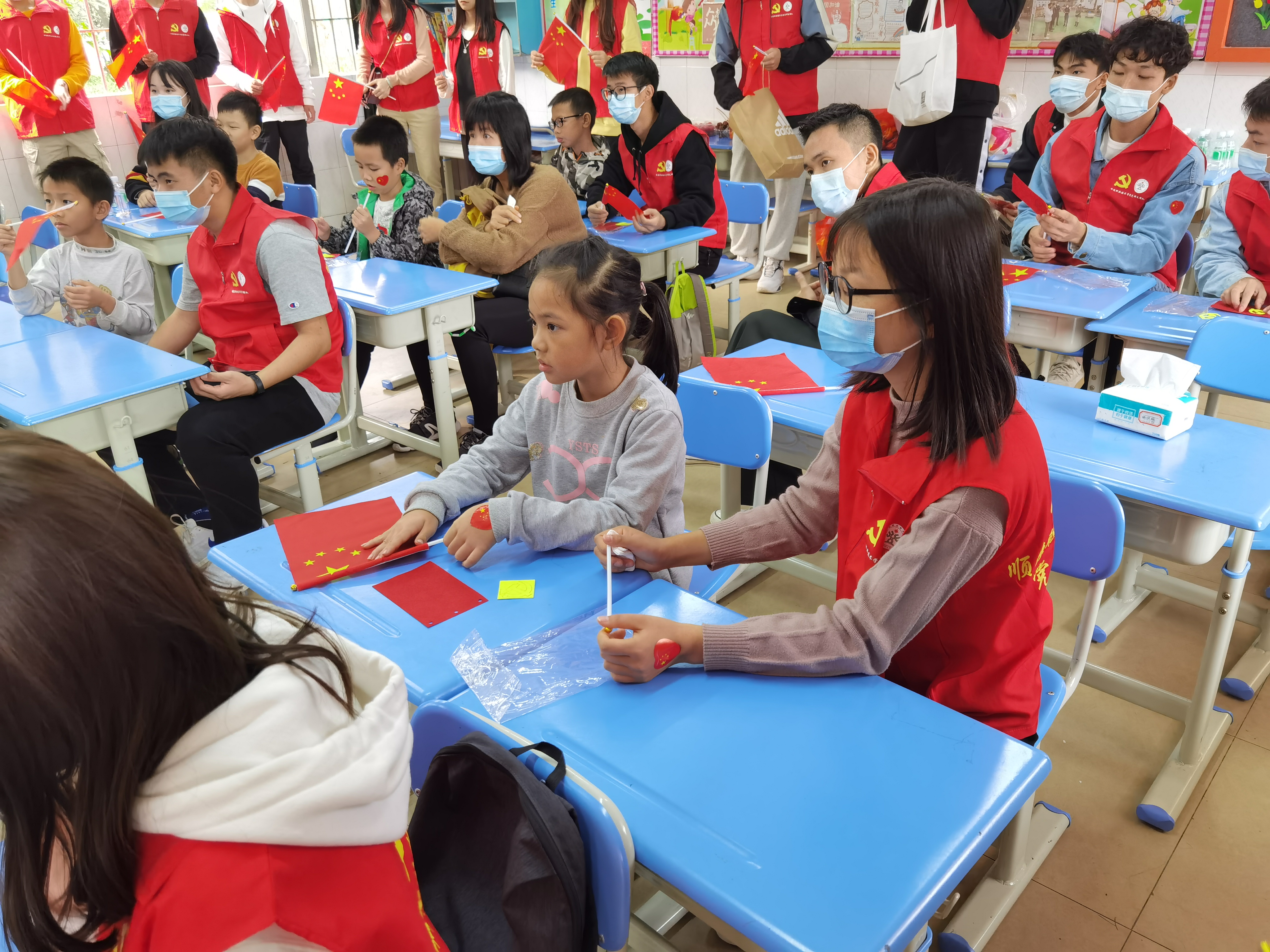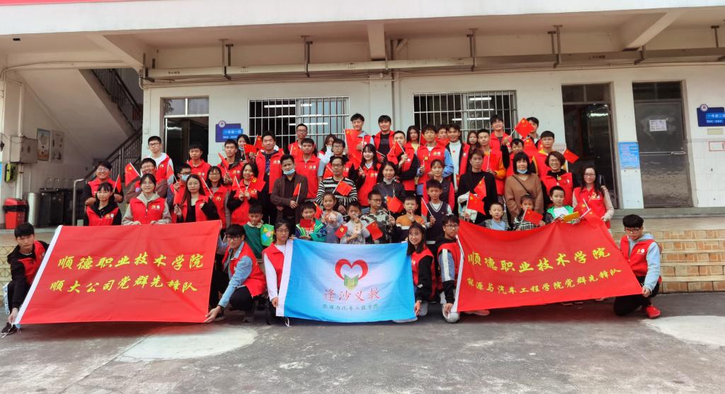 为引导广大小学生为实现国家富强、民族复兴的伟大“中国梦”而奋斗,增强小学生的爱党爱国热情,不断提高小学生的思想道德素质,2020年12月12日上午,能源与汽车工程学院学院学生党支部与顺大公司直属党支部在逢沙小学联合举办“党旗引领,童心向党”党旗DIY主题义教活动。本次活动参与人员有能源与汽车工程学院师生、顺大资产公司直属党支部师生、逢沙村家长与小学生共80人。