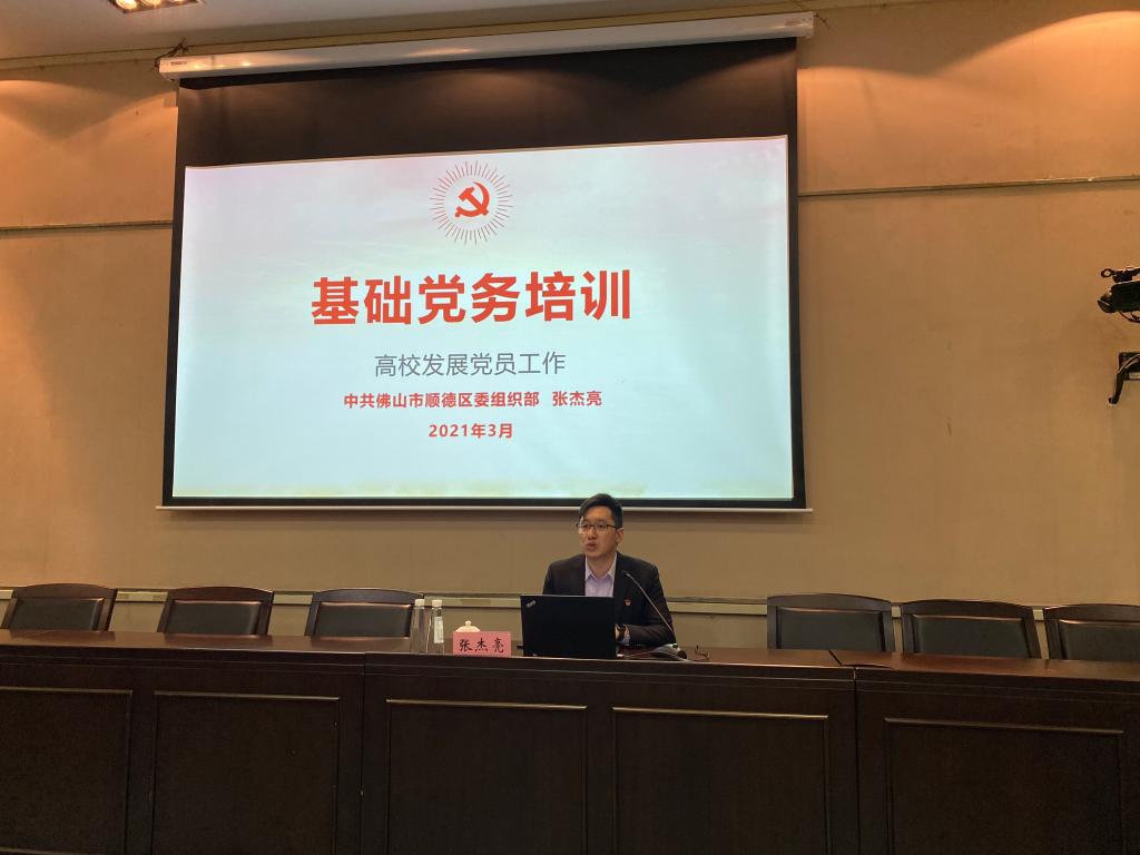 为切实加强永利官网基层党组织建设,进一步提高基层党组织发展党员工作的规范性,高质量做好2021年发展党员工作。3月17日上午,组织人事处在学术交流中心2212会议室召开发展党员工作培训会议。顺德区委组织部张杰亮、徐放,学校党委委员、组织人事处处长陈文海、各党总支(直属党支部)书记、组织员、党支部书记及组织人事处组织科工作同志共67人参加了本次培训会议。