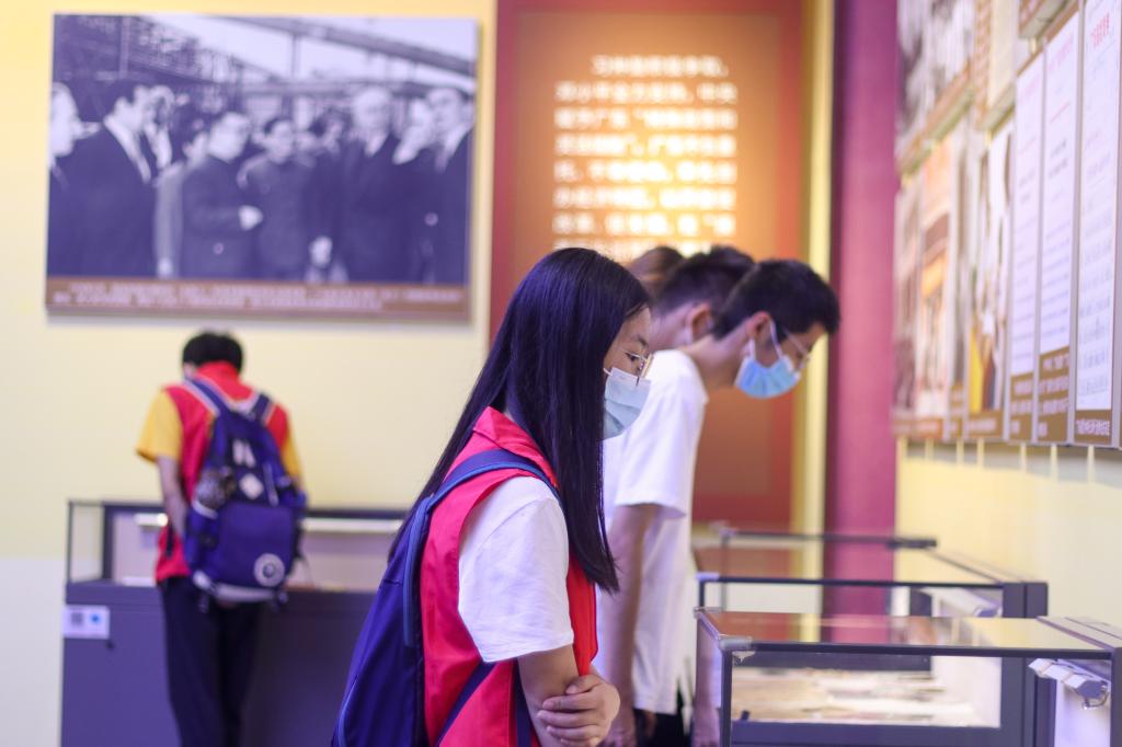 游学第二站:大潮起珠江—广东改革开放40周年展览馆。展览集思想性、历史性、科技性、艺术性于一体,全面生动展示了在党中央坚强领导下广东改革开放40年波澜壮阔的发展历程和辉煌成就。同学们一一参观了展览馆“敢为人先勇立潮头”、“增创优势砥砺前行”、“走在前列当好窗口”三个展厅,同学们兴趣浓厚,认真听讲解员讲解,不停驻足尤其在永利官网的展窗前热情交流,体会改革带来的伟大变迁,感受到改革开放精神的伟大。